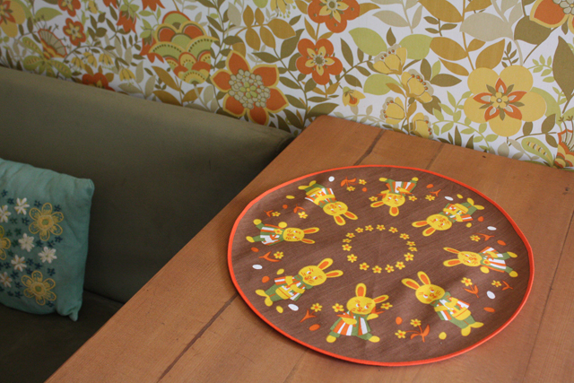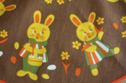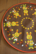 デンマークで見つけたヴィンテージクロスです。可愛らしいウサギがモチーフとなっています。Φ40cmありますので、玄関先などにイースターなどのオブジェ(卵やウサギ、ニワトリなどの置物)を飾ると華があり、お客様をお迎えするのにも、素敵です。今回入荷分は、よいヴィインテージコンディションでおススメです。