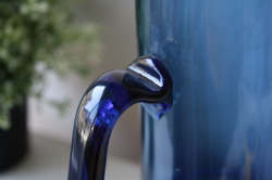 デンマークで見つけたスウェーデン製のヴィンテージガラスの花瓶です。落ち着いたブルーグレーにすっと伸びた首が美しいフォルムをつくっています。持ち手部分はハンドメイドならではの味わいのある作りとなっています。高さがありますので、長さのあるお花も生けることが出来ますね。