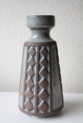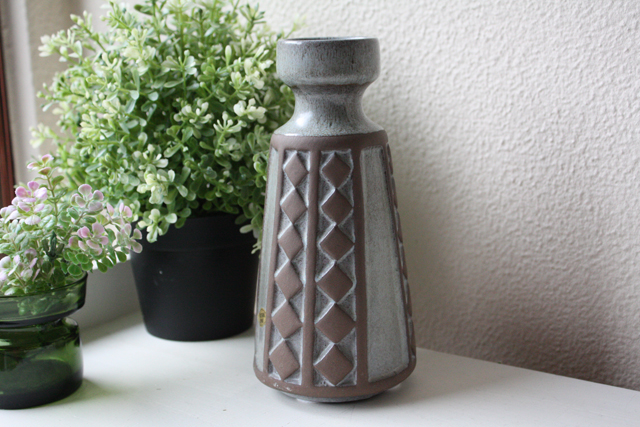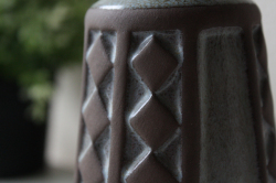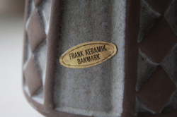 デンマークで見つけたFrank Keramik(フランクセラミック)の花瓶です。格子模様になった側面は、土の香りを残す素焼きと釉薬のかかった部分との対比がユニークなデザインとなっています。シックな色合いなので、カラフルなお花を引き立ててくれるでしょう。