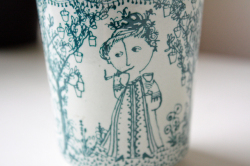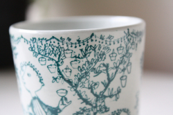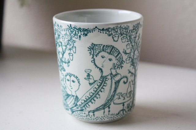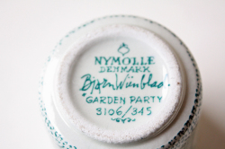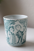 デンマークの国民的人気アーティスト/Bjorn Wiinblad(ヴョルン・ウィンブラッド)のミニカップです。小さなミニカップにヴィヨルンの繊細な愛の世界が描かれています。こちらは、「ガーデンパーティ」でお庭のパーティの様子がデザインされています。