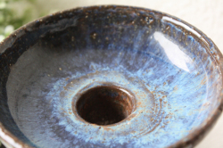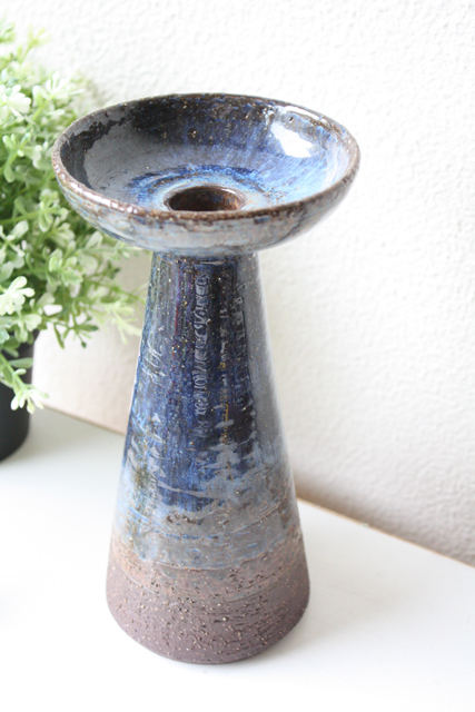 デンマーク、Michael Andersen & Son社のキャンドルホルダーです。マリンブルーの釉薬と土の温かさが感じられる素焼きとのコントラストが美しい作品です。大きなサイズで存在感もあり、オブジェとして飾っていただいてもよいでしょう。こちらのサイズに合うキャンドルを1本プレゼントします。