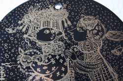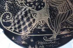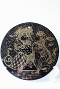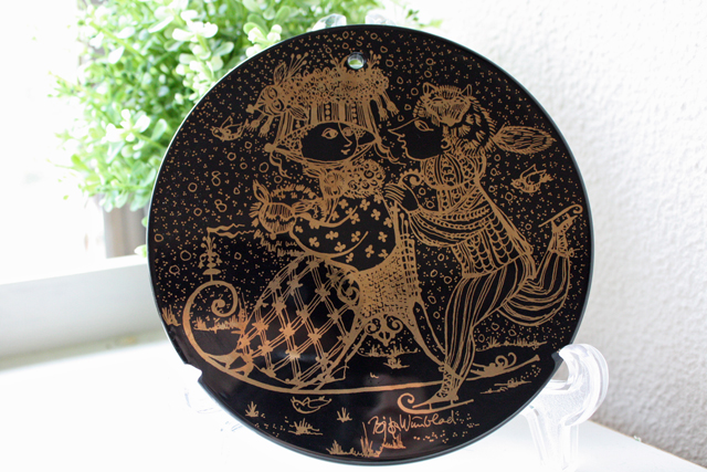 デンマークの人気デザイナーBjorn Wiinblad(ヴョルン・ウィンブラッド)の美しい絵皿です。こちらは、珍しいブラックプレートになります。漆黒の釉薬にゴールドのプリントが、華やかで上品です。