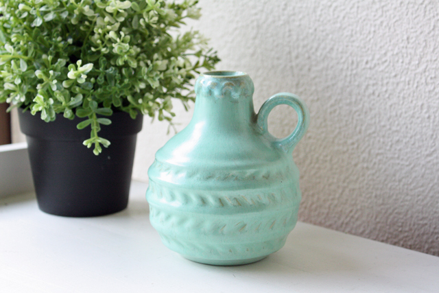 デンマーク、Michael Andersen & Son社の花瓶です。ミケルアナセンの中では珍しい全体的にたっぷりと釉薬がかけられたシリーズです。美しいミントグリーンに縄目模様が爽やかでオブジェとしても楽しめるでしょう。