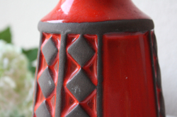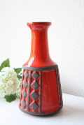 デンマークで見つけたFrank Keramik(フランクセラミック)の花瓶です。ハッとするようなオレンジが印象的です。側面には釉薬のかかっていないマットなダイヤ模様が立体的に浮かび上がっています。オブジェとして飾っても素敵ですね。