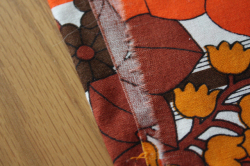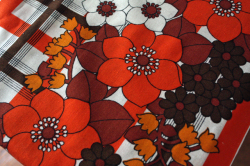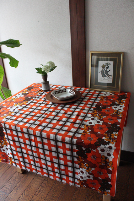 デンマークで見つけたヴィンテージクロスです。チェックとレトロはお花模様がヴィンテージらしい雰囲気です。こちらは、布地として購入されていたようで、端がかがられていません。薄手の生地でテーブルクロスやカーテンなどリメイクしてお使いいただくとよいでしょう。一部、プリントミス(画像参照)などがありますが、全体としてはよいヴィンテージコンディションです。