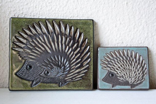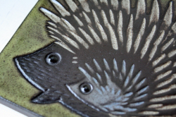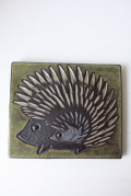デンマークで見つけたヴィンテージの陶板の壁掛けです。小さな飾りやすいサイズで、愛らしいハリネズミの親子がデザインされています。ほのぼのと幸せな気持ちになる可愛らしいモチーフですのでお部屋や玄関先などの雰囲気を和ませてくれるでしょう。裏には壁に引っ掛けられるように穴が開いています。