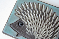 デンマークで見つけたヴィンテージの陶板の壁掛けです。小さな飾りやすいサイズで、愛らしいハリネズミがデザインされています。ほのぼのと幸せな気持ちになる可愛らしいモチーフですのでお部屋や玄関先などの雰囲気を和ませてくれるでしょう。裏には壁に引っ掛けられるように穴が開いています。