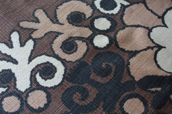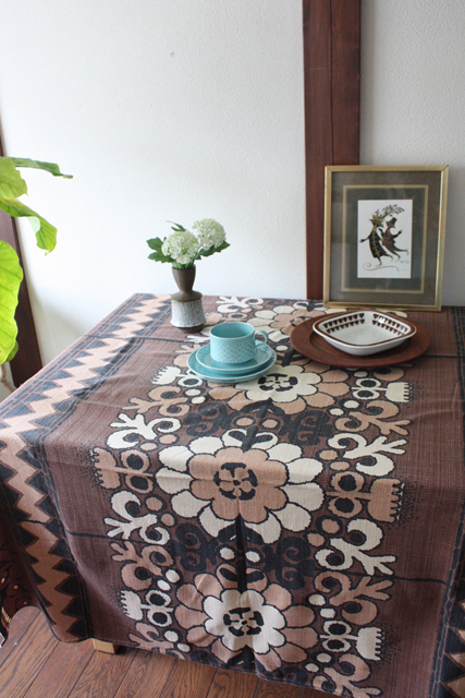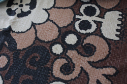 デンマークで見つけたヴィンテージクロスです。ざっくりとした生地にレトロなお花や植物が大胆にデザインされています。大柄でシックな色合いながら、可愛らしいモチーフはお部屋を北欧の雰囲気に演出してくれるでしょう。