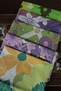 デンマークで見つけたヴィンテージファブリックのハギレです。グリーン&パープル系の布が5種類、30cm角でセットになっています。ヴィンテージ布ならではの柔らかな風合いや、少し褪せた色合いが魅力です。チクチク、ハンドメイドでクッションやポーチなど作ってみてはいかがでしょうか。