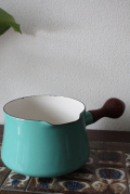 デンマーク、Jens.H.Quistgaard(イェンス・クイストゴー)デザインの片手鍋です。こちらは、復刻されているデザインですが今回は貴重なヴィンテージが入荷しました。復刻版よりも大きさはこちらのほうが大きく2~3人分のスープが作れるくらいです。爽やかなターコイズブルーは、キッチンの彩として活躍してくれるでしょう。ハンドルのチーク材も鍋の内側もきれいで、これからも長くご愛用いただけるでしょう。