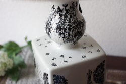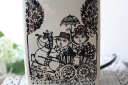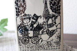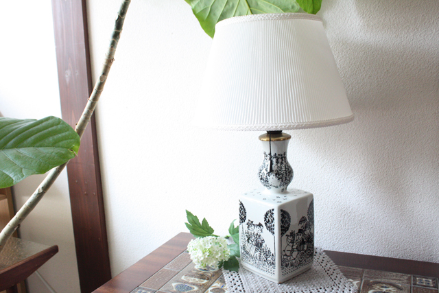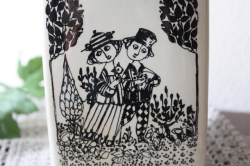 デンマークの国民的人気アーティスト/Bjorn Wiinblad(ヴョルン・ウィンブラッド)のテーブルランプです。こちらはバイヤーも今までに見たことがないという、とても珍しいものです。角柱のフォルム4面に違った図柄がデザインされています。首の部分は、丸みがありエレガントな雰囲気となっています。ヴィヨルンらしいほのぼのしたカップルの楽しげな様子がよいですね。