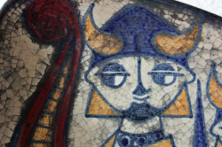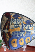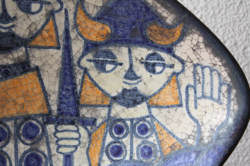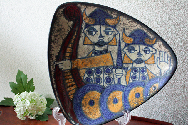 デンマークのMichael Andersen & Son社の三角ボウルです。デザインは数々の女性らしい柔らかな作品を生み出したMarianne starckになります。こちらの作品は、北欧ならではのバイキングがモチーフで、船に乗り込み前進する乗組員がデザインされています。こちらはドイツ/ブリュッセルの世界万博で金賞を受賞したPersia Techniqueと呼ばれる貫入による独特の技法が使われています。