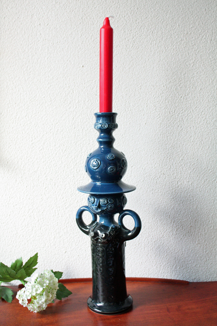 デンマークの人気デザイナーBjorn Wiinblad(ヴョルン・ウィンブラッド)がドイツ・ローゼンタール社のためにデザインしたキャンドルホルダーです。こちらは、図柄がプリントされたものではなく、フィギュアのようなフォルムとなっています。上部はネイビー、下部はブラックと落ち着いた色合いで仕上げられています。Bjorn Wiinbladのフィギュア型の作品は流通数が少なく、コレクターズアイテムとなっています。