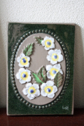 スウェーデンのjie gantofta社製の陶器の壁掛けです。Jieの陶板は可憐なお花がデザインされているものが多く、可愛らしいものからシックなものまでお気に入りを見つけてください。こちらは大き目のサイズになります。複数枚、組み合わせて飾るのも素敵です。裏面には、壁に掛ける穴が開いています。