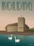 デンマーク在住の人気イラストレーター、ViSSEVASSEデザインのポスターです。ノスタルジックな作品を描き、インテリア雑誌などでも取り上げられている人気急上昇のViSSEVASSE。素材にもこだわりを持ち、エコロジカルな紙にプリントはデンマーク国内で作られました。こちらはデンマークのKOLDNG市ポスターです。KOLDNGハウスという建築物でKOLDNG市の中央に位置しています。建物前にある湖をからKOLDNGハウスを描いており、700年以上もこの風景は変わっていないそうです。その長い歴史の中での最悪な出来事は1808年に起こった火災。幸いにも改装が施され、今は美術館としてハッピーな時間を過ごしています。白鳥が気持ちよさそうに泳いでいるのが和みます。
