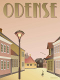 アンデルセン童話の作家、アンデルセンハウスの路地を一羽の、みにくいあひるの子?もしくは美しい白鳥?が歩いています。当の鳥は明らかに自分が何者であるか気にしていない様子。デンマークの第3の都市、オーデンセの可愛らしい町並みが描かれています。