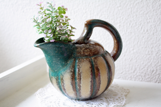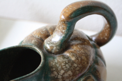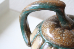 デンマーク製の持ち手付き花瓶です。独創的なフォルムに、グリーンやブラウンの釉薬が混ざり合った個性的な色合いが魅力です。お花を生けるだけでなく、飾っていただいても印象的なインテリアとなるでしょう。