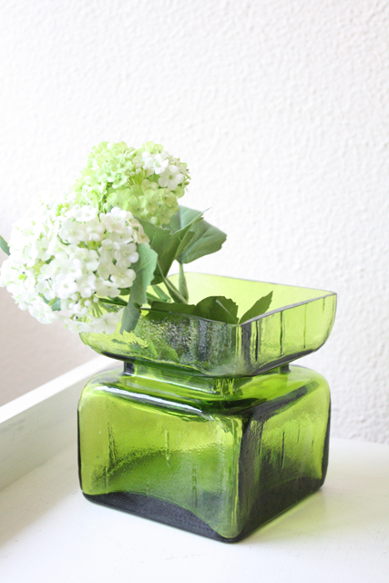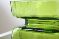 フィンランド/Riihimaen lasi社のPalaシリーズの花瓶です。こちらは同社で活躍したデザイナーHelena Tynellによるもので、様々なカラーや大きさがあることで知られています。今回入荷分は、クリアグリーンで一番大きなサイズです。飽きのこない今もガラスのコレクターに人気のあるベースです。表面が波打ったように作られているのでガラスなので表情がある素敵な雰囲気です。