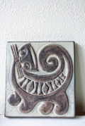 デンマーク、Michael Andersen & Son社の子ネコの陶板です。デフォルメされた子ネコが首をかしげた愛らしいポーズでこちらを向いています。こちらは、壁にかける穴は開いていないので立てかけて飾っていただくタイプになります。