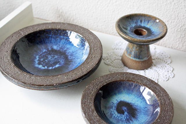 デンマーク、Michael Andersen & Son社のキャンドルホルダーです。マリンブルーの釉薬と土の温かさが感じられる素焼きとのコントラストが美しい作品です。