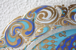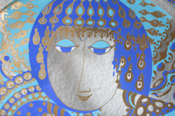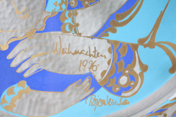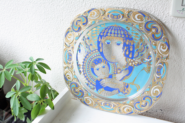 デンマークで人気のアーティスト/Bjorn Wiinblad(ヴョルン・ウィンブラッド)のイヤープレートです。こちらはクリスタルで出来ており、ブルーと金彩で生まれたキリストを抱くマリア様が描かれています。美しいブルーは、図柄の尊さとあいまって神々しい雰囲気となっています。たっぷりと厚みのある贅沢な作りで眺めているだけでもほっこりした気分に浸れそうです。ドイツのローゼンタール社のスタジオラインで、リミティッドプロダクトです。コレクションにいかがでしょうか?