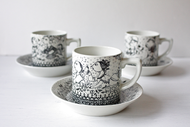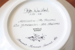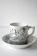 デンマークの人気デザイナーBjorn Wiinblad(ヴョルン・ウィンブラッド)のカップ&ソーサーです。このシリーズは、春夏秋冬をモチーフにして4種類の図柄があります。こちらは夏で、カップルの2人がタンポポの綿毛を吹いている様子が描かれています。デミタスカップくらいの小ぶりなサイズですので、コンプリートして飾っていただいてもステキでしょう。