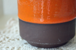 デンマーク、Knabstrup社のヴィンテージ花瓶です。円柱のシンプルなフォルム、厚みがあり土の温かさを残した釉薬のかけ方が絶妙です。鮮やかなオレンジは、北欧のチーク家具とにも相性がよく、秋冬に向けてお部屋を温かな雰囲気にしてくれるでしょう。