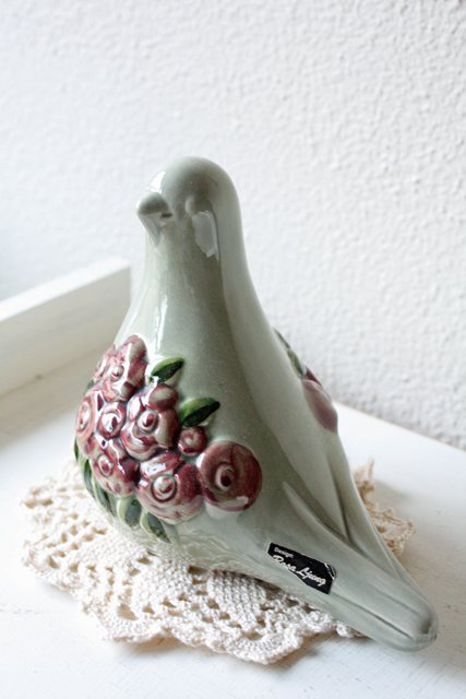 スウェーデン/Rosa Ljungデザインのオブジェです。こちらはハトがモチーフになっていて中央には、Rosa Ljungの得意なお花がデザインされており可愛らしい雰囲気です。ハトの体は淡いモスグリーンで、お花は落ち着いたローズ色です。大きなサイズなので、インテリアのアクセントにいかがでしょうか。