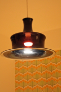 1925年創業、デンマーク王室御用達ブランドHolmegaard(ホルムゴー)のペンダントランプです。素材はガラスで、上質な造りです。フォルムも大変凝った作りでインテリアのポイントになります。珍しいオーバジン色(濃いパープル)の雰囲気は食卓をスタイリッシュに照らしてくれるでしょう。。上質なガラスならではの滑らかな肌さわりも魅力ですね。今回入荷分のうち、こちらはクリアガラスに色ガラスをのせていますので透明感のあるお色を楽しめます。電気器具は、日本仕様に電機メーカーに依頼して取り付けていますのですぐにお使いいただけます。