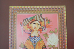 デンマークの人気デザイナーBjorn Wiinblad(ヴョルン・ウィンブラッド)の美しい色絵(イラスト)です。ヴョルンといえば絵皿が有名ですが、イラストレーターとしての作品も素晴らしいのです。こちらは東西南北の4部作として作られたシリーズです。ヴィヨルンらしいエキゾチックな女性がモチーフとなっています。フレームは、木製で作品の雰囲気ともよく合っていますね。
