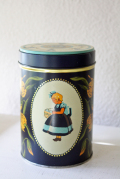 デンマークの高級スーパーIrma(イヤマ)のヴィンテージ缶です。イメージキャラクターのイヤマちゃんがうつむいてたたずんでいます。ブルーのワンピースに、頭には大きなリボン、クラシックで上品ですね。イヤマの缶はデンマークでもコレクターが多いのです。イヤマちゃんのキャラクターは、過去4度イメージチェンジしていますが一番古い時代のものになります。