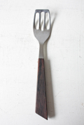 デンマーク製、ヴィンテージのフライ返しです。こちらはスプーンほどの大きさで、柄がチーク製で出来ており、北欧らしいデザインになっています。チークの耳付きステンレスのお皿に合わせても素敵ですし、カジュアルな印象ですので、アイデア次第でデイリーに使って頂きたいカトラリーです。