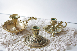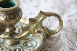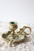 デンマークで見つけた真鍮のキャンドルホルダーですこちらは持ち手付きの大変雰囲気のあるタイプになります。小ぶりかつ、凝ったデザイン、フォルムですので、現行品にはないヴィンテージならではの趣があります。オブジェとして飾って頂くと、落ち着いたアンティークのインテリアを演出できそうです。