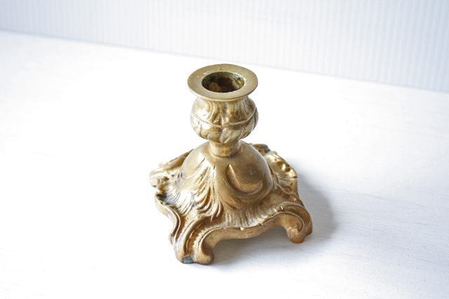 デンマークで見つけた真鍮のキャンドルホルダーですこちらは凝った作りのどっしりしたタイプで、現行品にはないヴィンテージならではの趣があります。オブジェとして飾って頂くと、落ち着いたアンティークのインテリアを演出できそうです。