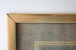 ■コンディション:フレーム部分は、経年によって擦れがありますがヴィンテージ品ならではの味わい深い雰囲気となっております。フレーム部分は木製で、金彩の下地としてピンク色が塗られておりその部分が見えています。周りの装飾紙に日焼けがみられます。