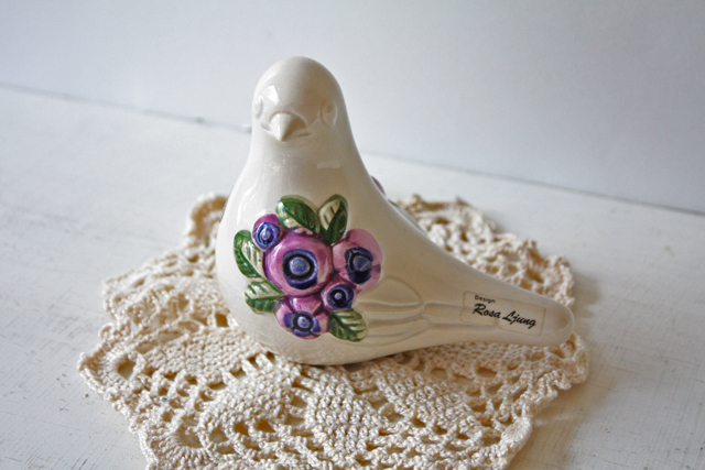 スウェーデン/Rosa Ljungデザインのオブジェです。こちらはハトがモチーフになっていて中央には、Rosa Ljungの得意なお花がデザインされており可愛らしい雰囲気です。華やかなモチーフがシンプルな白の鳥にマッチしており、大変おススメです。