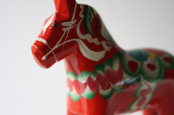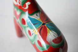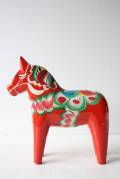 スウェーデン製のダーラナホースです。ダーラヘスト(スウェーデン語でダーラナ馬という意味)は、18世紀の始め頃、木こりの人たちが 仕事が終わった後に遊び半分に作った木彫りの馬が始まりといわれています。その後この木彫りの馬は、子供達のおもちゃとして自然に定着していき、赤く色が塗られるようになったのは19世紀になってからです。日本ではダーラナホース (スウェーデンの木の馬)という名前で紹介されています。現在はスウェーデンそのものを象徴するものとされています。スウェーデンでは古くから馬は幸せを運んでくれるとされ親しまれています。今回入荷分は、ヴィンテージではなく比較的新しいものです。