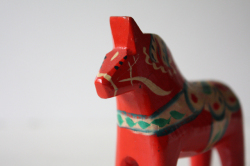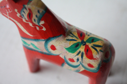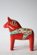 スウェーデン製のダーラナホースです。ダーラヘスト(スウェーデン語でダーラナ馬という意味)は、18世紀の始め頃、木こりの人たちが 仕事が終わった後に遊び半分に作った木彫りの馬が始まりといわれています。その後この木彫りの馬は、子供達のおもちゃとして自然に定着していき、赤く色が塗られるようになったのは19世紀になってからです。日本ではダーラナホース (スウェーデンの木の馬)という名前で紹介されています。現在はスウェーデンそのものを象徴するものとされています。スウェーデンでは古くから馬は幸せを運んでくれるとされ親しまれています。今回入荷分はとても小さくて可愛らしいです。
