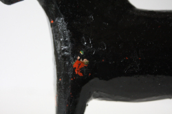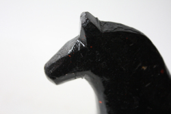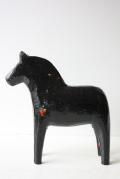 スウェーデン製のダーラナホースです。ダーラヘスト(スウェーデン語でダーラナ馬という意味)は、18世紀の始め頃、木こりの人たちが 仕事が終わった後に遊び半分に作った木彫りの馬が始まりといわれています。その後この木彫りの馬は、子供達のおもちゃとして自然に定着していき、赤く色が塗られるようになったのは19世紀になってからです。日本ではダーラナホース (スウェーデンの木の馬)という名前で紹介されています。現在はスウェーデンそのものを象徴するものとされています。スウェーデンでは古くから馬は幸せを運んでくれるとされ親しまれています。こちらはブラックカラーで大変シックなオブジェです。