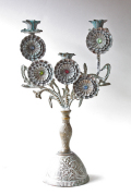 真鍮の燭台です。こちらは大き目のフレンチスタイルですので個性的でアンティークらしい雰囲気があります。お花のモチーフが大変シックなデザインです。レースなどと一緒に飾っていただくと一層素敵です。オブジェとして飾って頂くと、落ち着いたアンティークのインテリアを演出できそうです。