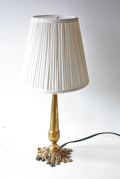 デンマークで見つけた真鍮のテーブルランプです。花びらのような繊細なデザインの小ぶりのランプでロマンティックな印象です。電気器具は、日本仕様に国内メーカーに依頼して取り付けていただいておりますのですぐにお使いいただけます。シェードはオリジナルではありませんが、シェード専門店にて麻素材のシンプルなものを購入しました。ランプのサイズに合わせてお付けしていますが、シェードが不要の場合は、定価より2500円引きとさせていただきます。