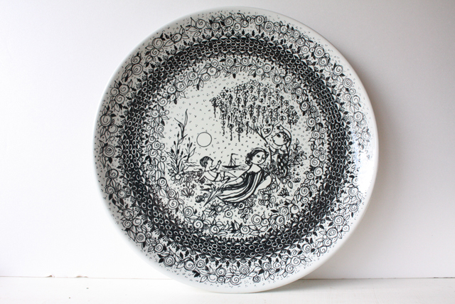 デンマークの人気デザイナーBjorn Wiinblad(ヴョルン・ウィンブラッド)の美しい絵皿です。こちらは春・夏・秋・冬の4枚が存在するシリーズです。こちらのプレートは、夏になります。壁にかけられるようになっておりますので、シーズンごとに掛けかえられても素敵ですね。