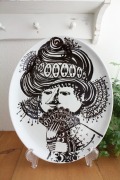 デンマークの国民的人気デザイナーBjorn Wiinblad(ヴョルン・ウィンブラッド)の美しい絵皿です。こちらはとても珍しい縦長のオーバル型です。美しい貴婦人が華やかな髪飾りを付け、扇を手に微笑んでいます。細かく繊細な描写の多いヴョルンですが、太く力強い線で大胆に描かれたこちらのプレートからは迫力が感じられます。