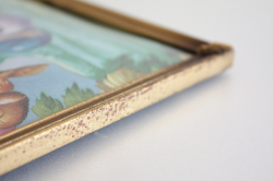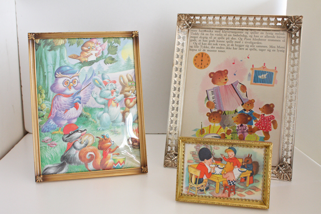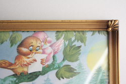 デンマークのアンティークショップで見つけたフォトフレームです。中にはアンティークの刺繍やレース、また写真や古い絵本の切抜きを入れても素敵なインテリアとしてお使いいただけるでしょう。掲載写真には古い絵本の切り抜きが入っています。