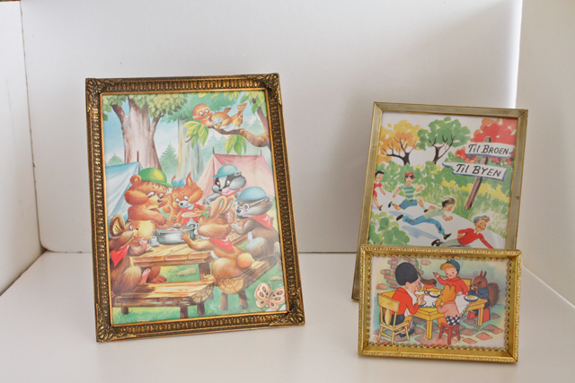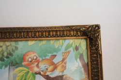 デンマークのアンティークショップで見つけたフォトフレームです。中にはアンティークの刺繍やレース、また写真や古い絵本の切抜きを入れても素敵なインテリアとしてお使いいただけるでしょう。掲載写真には古い絵本の切り抜きが入っています。