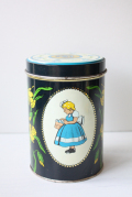 デンマークの高級スーパーIrma(イヤマ)のヴィンテージ缶です。イメージキャラクターのイヤマちゃんがうつむいてたたずんでいます。ブルーのワンピースに、頭には大きなリボン、クラシックで上品ですね。イヤマの缶はデンマークでもコレクターが多いのです。