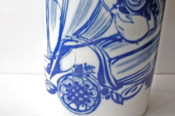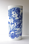 ドイツの一流ブランド、ローゼンタールの花瓶です。デザインは、デンマークの有名なアーティストBjorn Wiinbladで真っ白な白磁に鮮やかなブルーの色彩で美しい女性が描かれています。オーバルの珍しいフォルムで大き目のサイズですので、カサブランカや枝ものなども生けることができます。