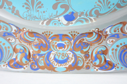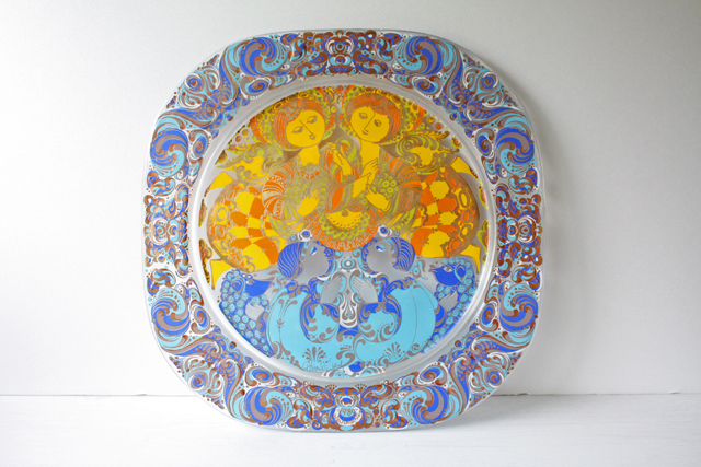 デンマークで人気のアーティスト/Bjorn Wiinblad(ヴョルン・ウィンブラッド)のイヤープレートです。こちらは1976年から1981年までの6年間だけ製作されたシリーズになります。クリスタルで出来ており、黄色と鮮やかなブルーで天使のようなモチーフがゴージャスに描かれています。たっぷりと厚みのある贅沢な作りで眺めているだけでもほっこりした気分に浸れそうです。ドイツのローゼンタール社のスタジオラインで、リミティッドプロダクトです。コレクションにいかがでしょうか?
