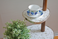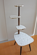 1950年代、ミッドセンチュリーのプランターテーブルです。3つの小さなテーブルは方向が変えられるのでお好きな角度で表情をつけることができます。柔らかな曲線を使った50年代らしい小さな家具です。小ぶりなサイズですので、置く場所も選びません。お好きな観葉植物やカップ&ソーサーを飾ってお楽しみください。こちらは組み立て式なので、使わないときは分解してコンパクトに収納できます。