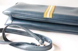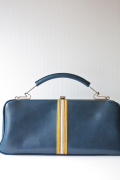 デンマークで見つけたヴィンテージのハンドバックです。こちらはフランス製のブルーグリーンカラーのバックでクラッチバックタイプになります。ショルダーバックにできるように紐がついています。真ん中にホワイトとレモンカラーのストライプラインがポイントになります。ヴィンテージ古着のお好きな方、工夫を凝らしてファッションに取り入れてみませんか?レトロヴィンテージスカーフをお付けします。